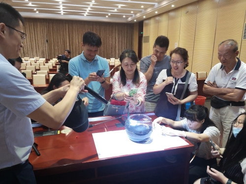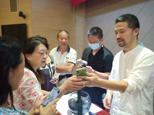 李敬伟老师还现场教起了“创意水墨拍摄”,吸引了许多人聚集到讲台前。几滴墨水滴入清澈的水中,大家跟着李老师的拍摄手法,找好角度,“咔咔咔”快门声此起彼伏,一张张意境优雅的水墨照片就诞生了。